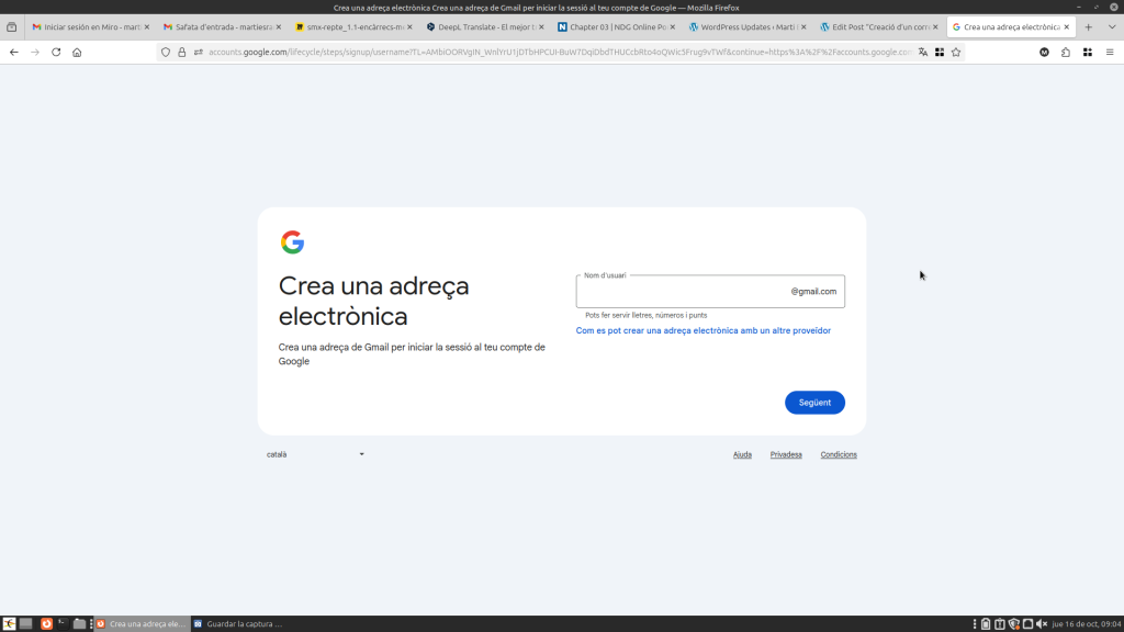Per últim creàs la teva adreça electrònica i la contrasenya.
