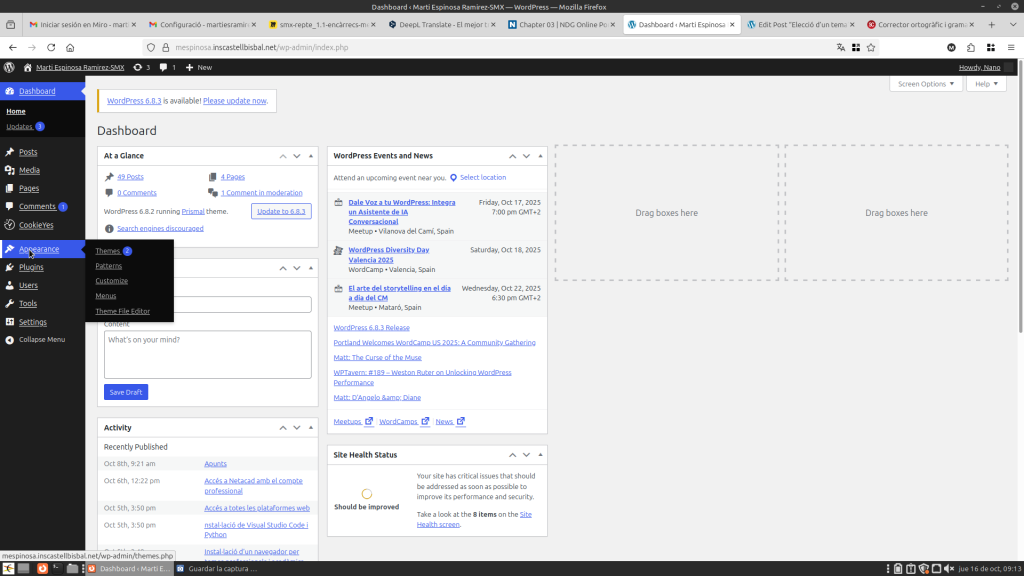 Per fer l’elecció d’un tema has d’anar a aparença