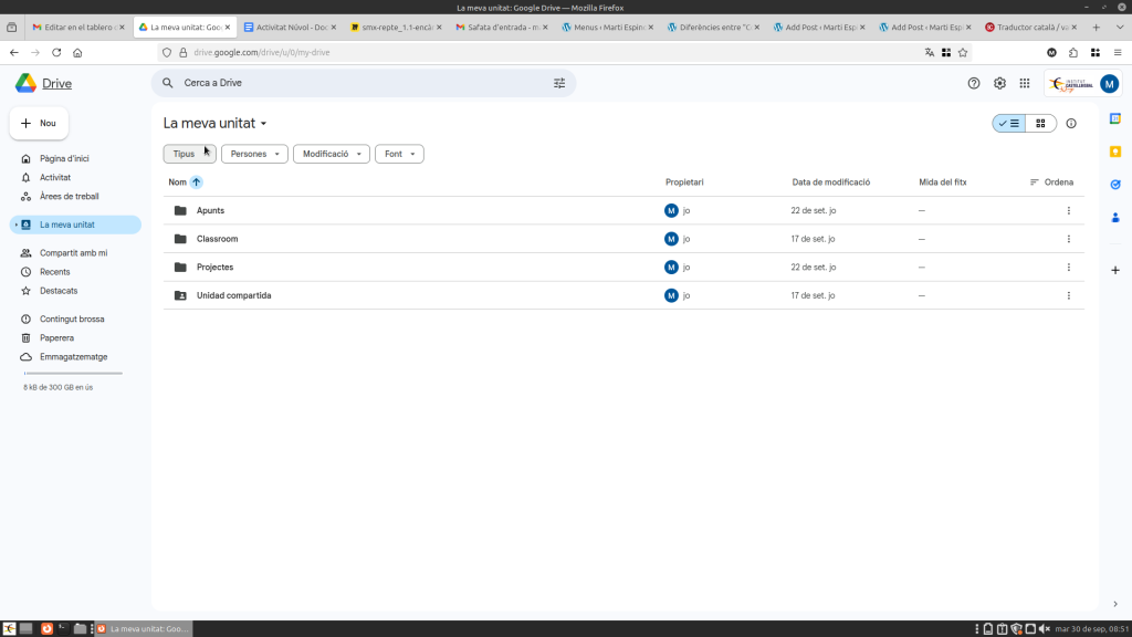 Per estructurar el Drive has d’anar a la teva unitat a l’esquerra de la pantalla, aleshores relaciones amb el clic esquerre i crea carpeta nova. I després tries el nom de les carpetes.