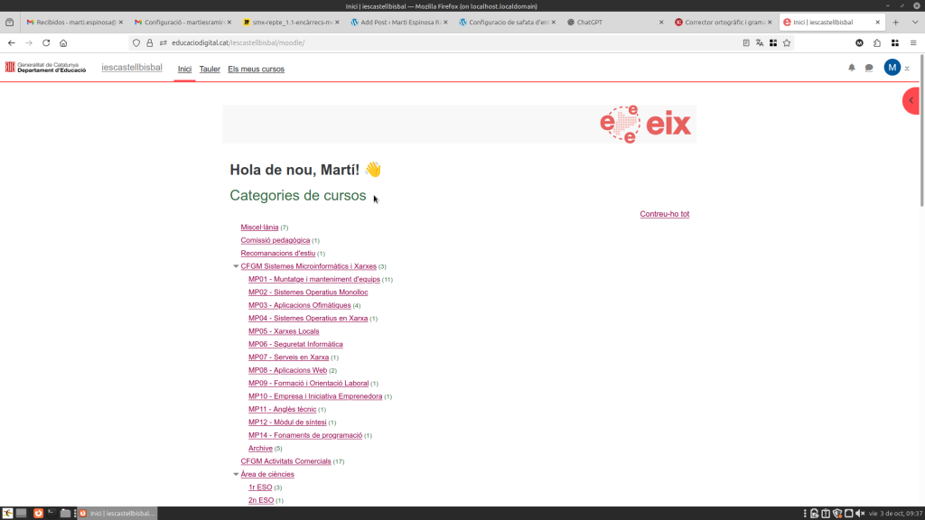 Per inicia sessió busques el Moodle del teu centre i inicies sessió.