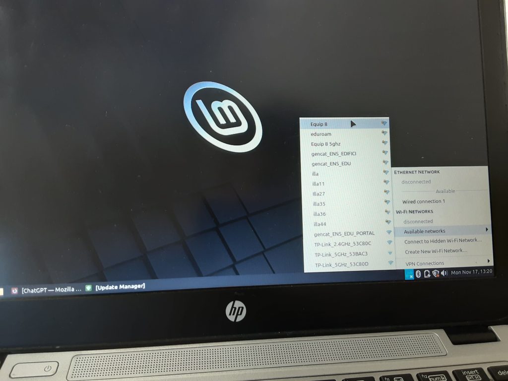 Al principi no deixava entrar a Aviables networks i vam esbrinar que era que els drivers no estàvem actualitzats. A les hores vam actualitzar els drivers del portàtil per la wifi i vam reiniciar el portàtil i ja podíem entrar a Aviables networks.