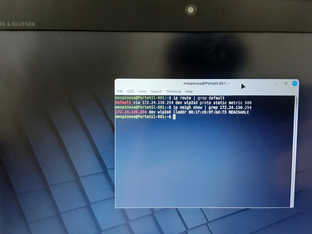 Per últim per saber la IP i el MAC del AP hem utilitzat la comanda “ip route | grep defaul” que ens dona la IP i després pel MAC vam utilitzar la comanda “ip neigh show | grep 172.24.130.254” utilitzant la IP que hem obtingut avanç.