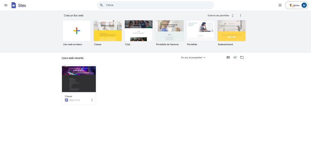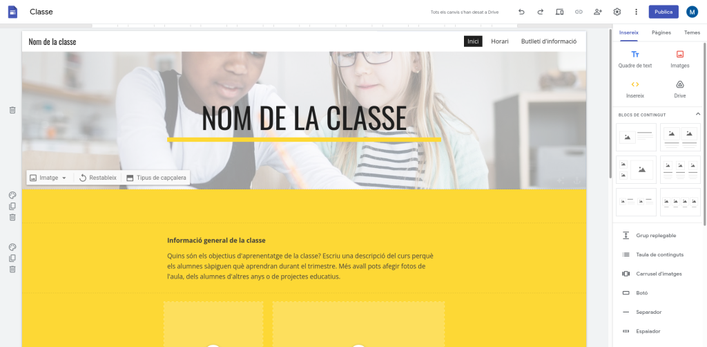 Nosaltres vam escollir una galeria de plantilles que s’anomena Classe