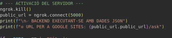 Això es troba al final del teu codi de Colab. És el que permet que la teva web de Google Sites (que està a internet) pugui “parlar” amb el teu ordinador (que és privat).